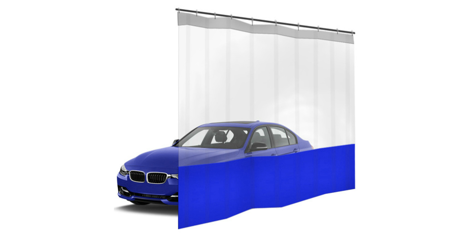 Краткое описание «Шторы ПВХ для автомойки с окном, цвет синий 1м³»